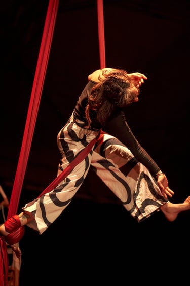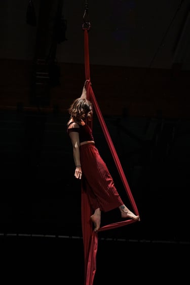 Lyre Zachor is an aerial silks and circus artist whose personal approach to aerial practice is merging ideas and practice forms from dance, aerial and movement practices. Circus, dance, movement, and music are Lyre’s gateways to the unseen magic surrounding us. In a world that has forgotten how to simply exist,