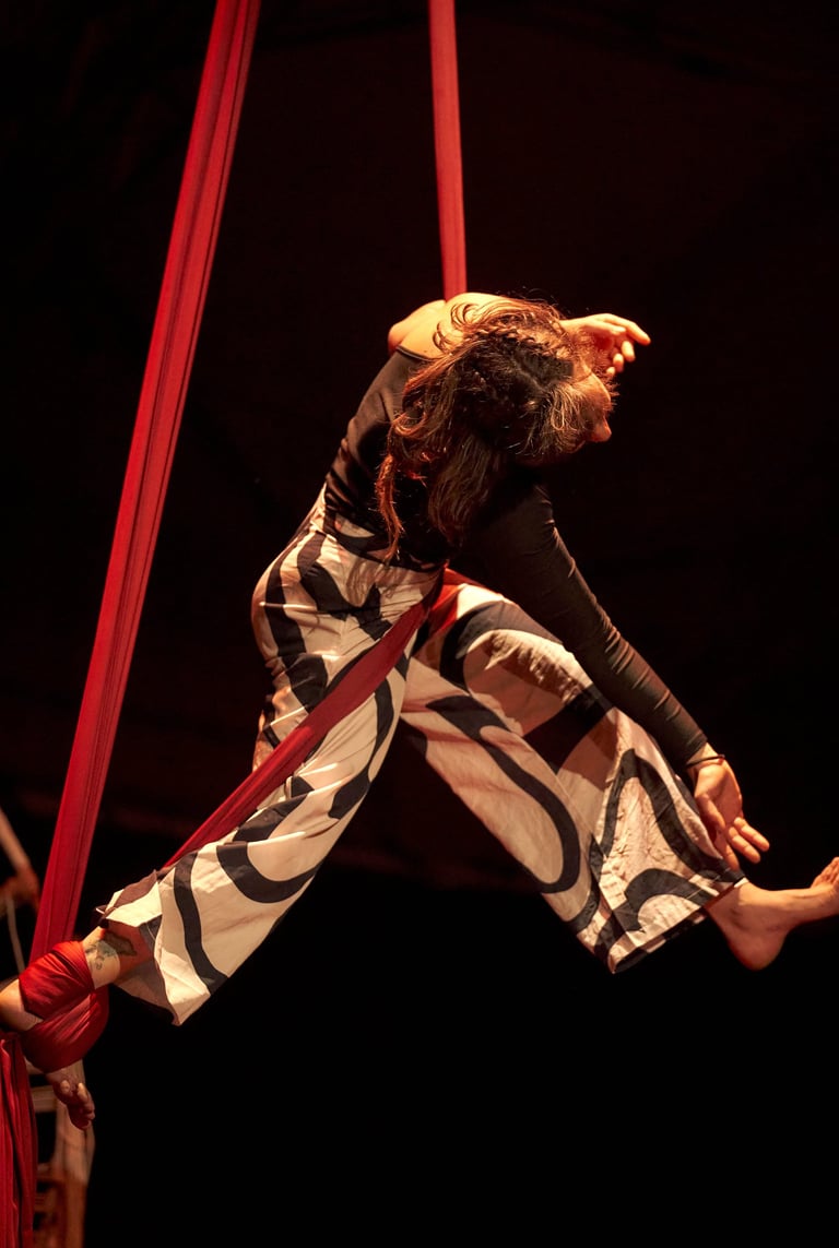 Our bodies are amazing tools with vast potential that can’t be fully explored in one lifetime. In this performance, Lyre combines her three loves: breath, silks, and movement. The common thread among them is sound, which deepens her exploration of each theme. By sharing all these elements, she invites you to experience them and discover which resonates with you the most.